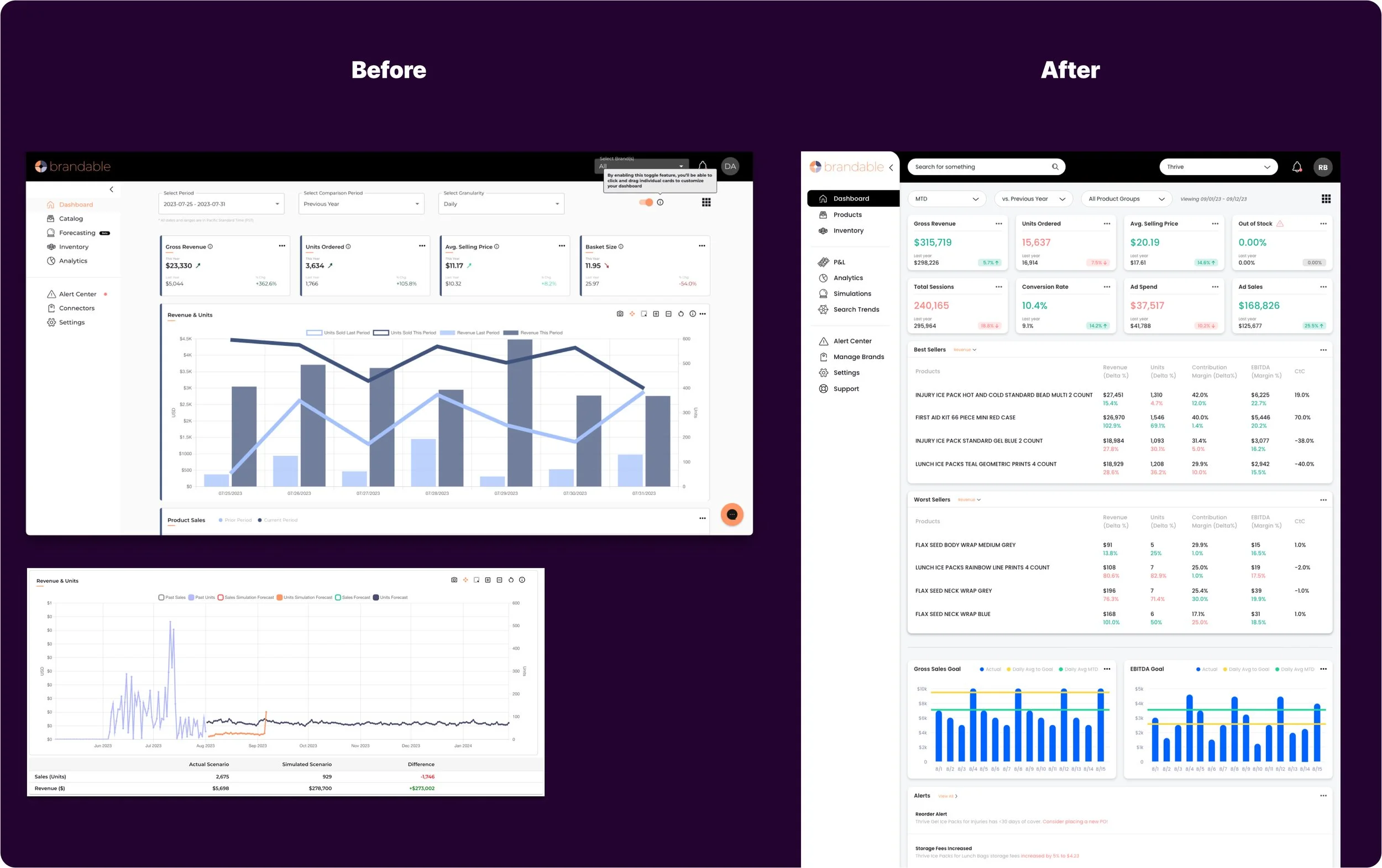 Our speedy P&L table can run any pivot in a sec or less. Put your products in categories and have it instantly reflected. View your full brand on one interface